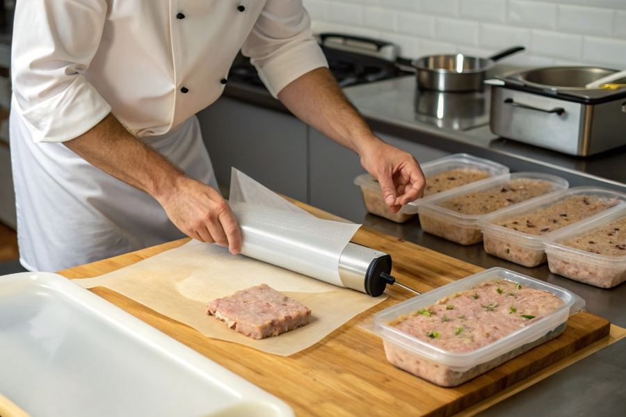 Porcjowanie pasztetu na mniejsze kawałki przed zamrożeniem znacząco ułatwia późniejsze rozmrażanie. Optymalna wielkość porcji to około 150-200 gramów – wystarczająca na 2-3 posiłki dla jednej osoby. Każdą porcję należy zawinąć w folię spożywczą, dociskając ją ściśle do powierzchni pasztetu, co zapobiega utlenianiu i wysychaniu.