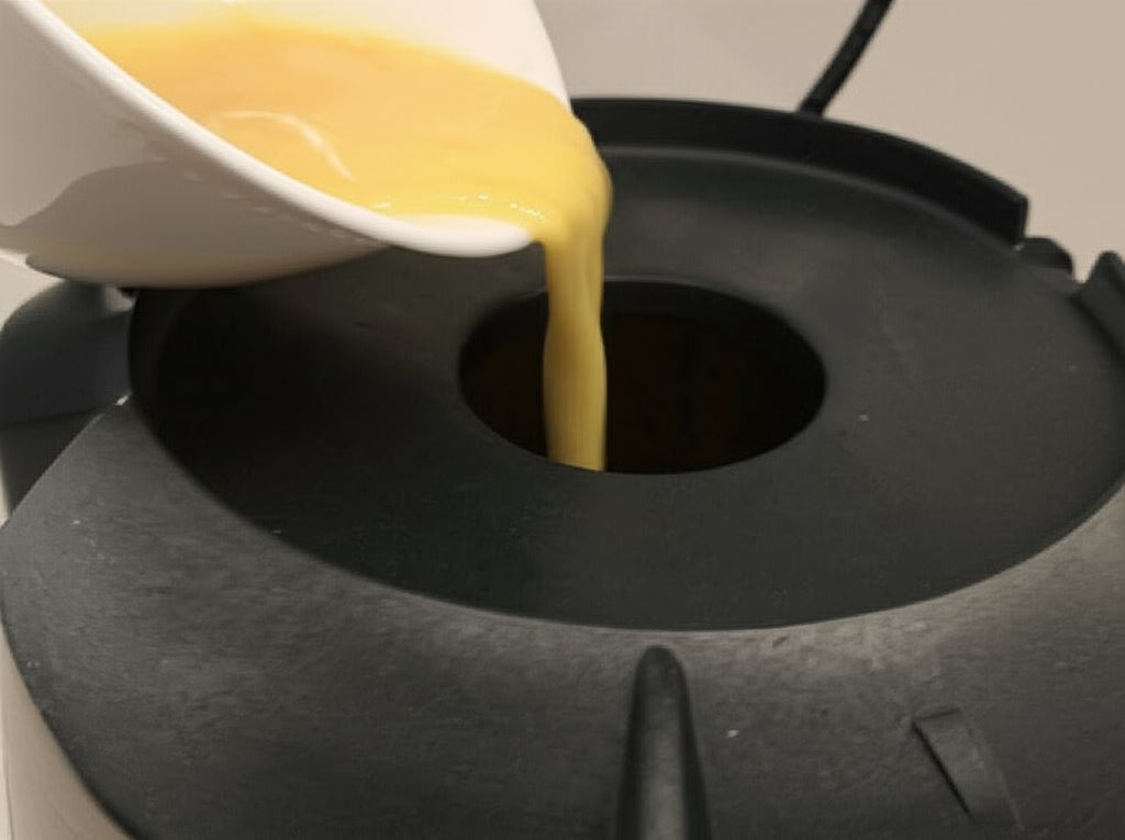 W oddzielnej misce ubij razem jajko i żółtko, korzystając z trzepaczki. Dodaj do mieszanego masła.
