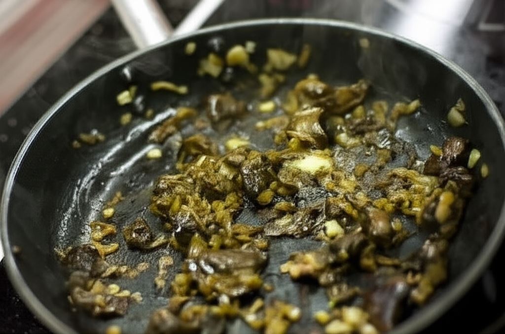 Cebule i borowiki posiekaj w kostkę. Zrumień na patelni z masłem, aż nabiorą złotego koloru.
