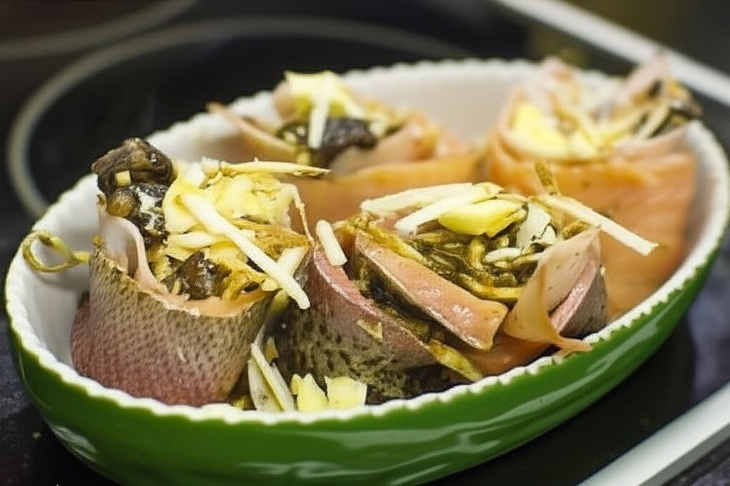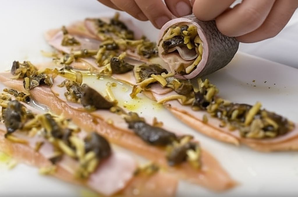 Odkryj wyjątkowy smak pstrąga w eleganckiej odsłonie! Nasze roladki łączą delikatne filety rybne z intensywnym aromatem borowików i wyrazistym smakiem oscypka. To danie, które zachwyci nawet najbardziej wymagających smakoszy. Soczyste mięso pstrąga, otulone wędzoną szynką i nadziane aromatycznym farszem, tworzy harmonijną kompozycję smaków, która rozpływa się w ustach.