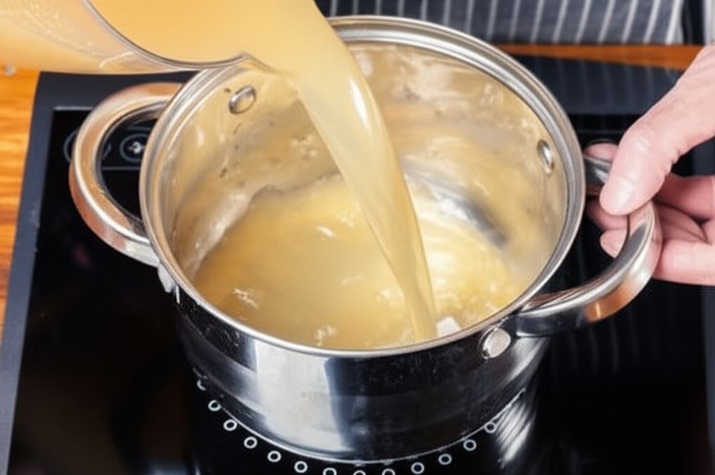 Żelatynę rozpuść w 0,5 szklanki chłodnego wywaru. Do czystego garnka przefiltruj 1 l wywaru.