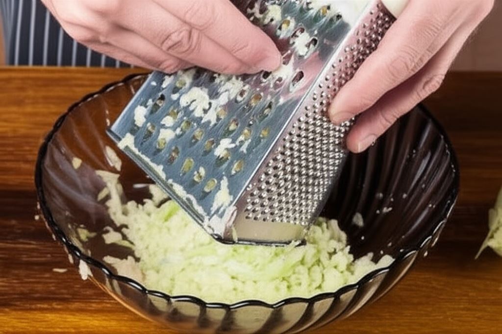Mięso umieść w misce, kapustę zetrzyj na tarce z większymi oczkami (wyciśnij również sok z kapusty). Cebulę drobno pokrój.