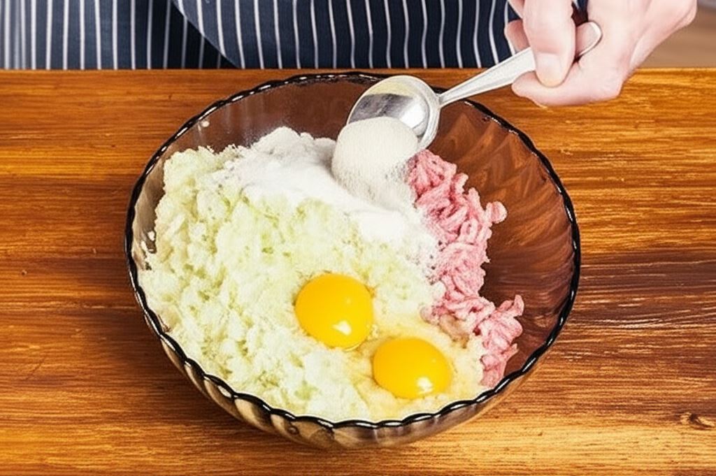Do mięsa wsyp kapustę, jajka, kaszę mannę, cebulę, pieprz i sól do smaku. Wszystko wymieszaj i uformuj pulpeciki.