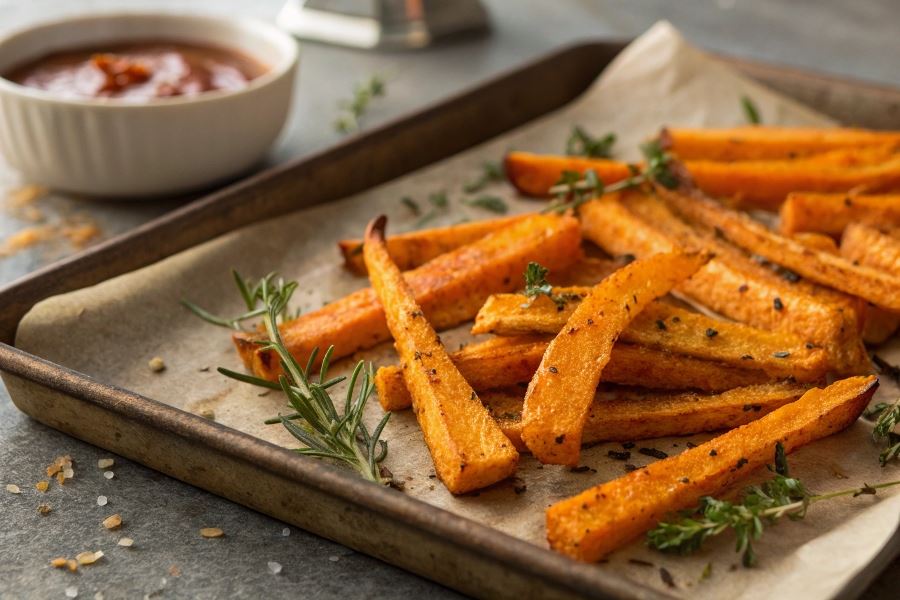 Aby uzyskać wyjątkowo chrupiące frytki, warto przed pieczeniem posypać kawałki dyni 1-2 łyżkami mąki kukurydzianej lub skrobi ziemniaczanej. Ten prosty trik znacząco poprawia teksturę gotowych frytek.