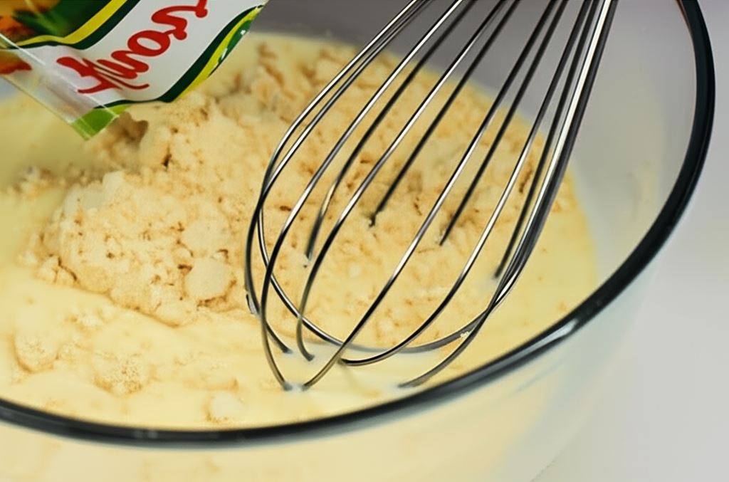 W misce połącz mąkę, jajko, proszek do pieczenia, cynamon, cukier waniliowy z chłodnym mlekiem.
