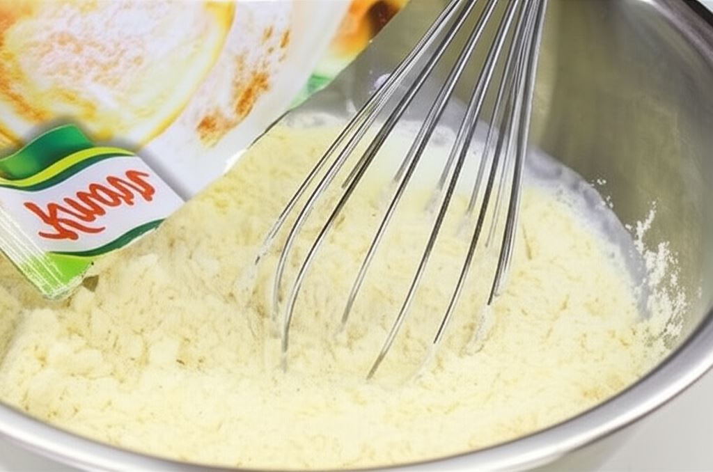 W naczyniu połącz mąkę, jajo, proszek do pieczenia, cynamon, cukier z mlekiem i pozostaw na 10 minut.