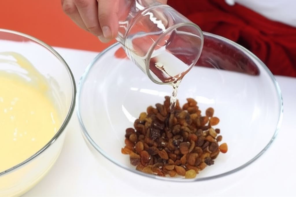 Rodzynki zamocz w rumie i także odstaw na 10 minut.
