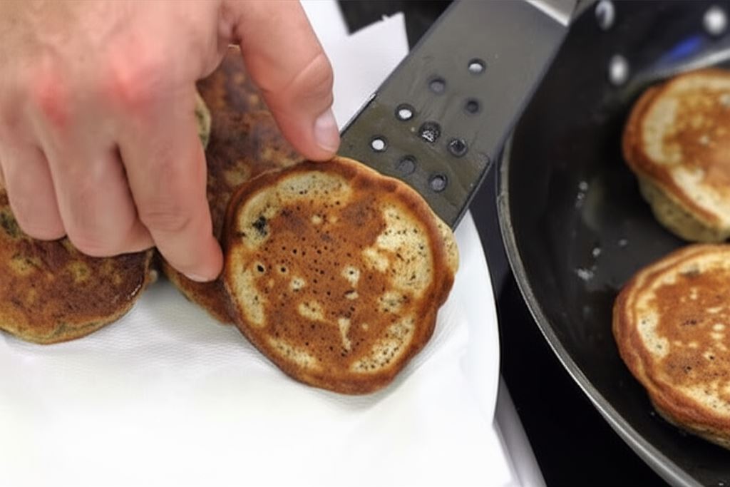 Podgrzej delikatnie olej na szerokiej patelni i smaż okrągłe placki przez kilka minut z obu stron. Powinny być chrupiące i złociste.