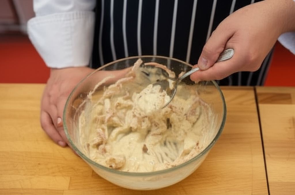 Połącz sos sałatkowy Knorr z Majonezem Hellmann's Light oraz trzema łyżkami soku z ananasa.