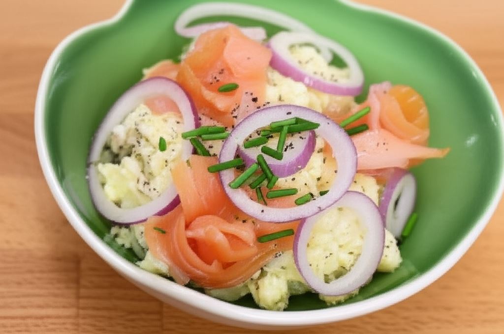 Delikatna sałatka z łososiem wędzonym i ziemniakami to prawdziwa uczta dla podniebienia. Kremowy majonez łączy wszystkie składniki w harmonijną całość, tworząc danie, które zachwyca nie tylko smakiem, ale i wyglądem. Ziemniaki ugotowane w mundurkach, pokrojone w równą kostkę, stanowią doskonałą bazę dla wyrazistego smaku wędzonego łososia.