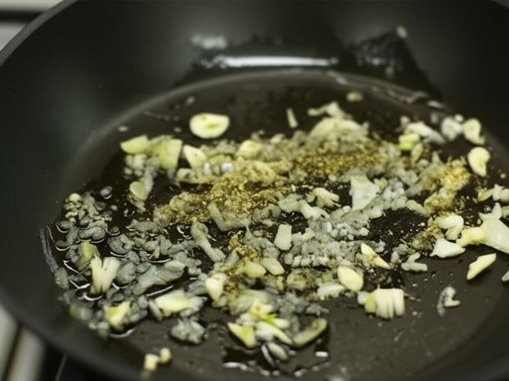 Kiedy stanie się miękkie, odcedź, ostudź i zmiel w maszynce razem z grzybami.