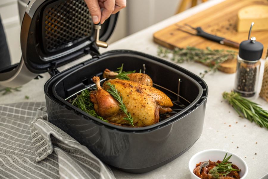 - Waga ptaka – optymalna masa to 180-220 gramów, większe sztuki mogą być trudniejsze do równomiernego przygotowania w airfryer