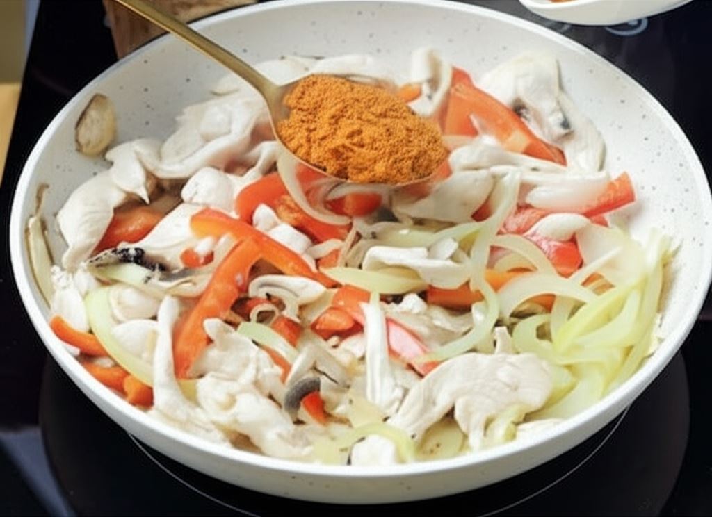 Quesadilla z kurczakiem to doskonała propozycja dla wszystkich, którzy pragną odkryć smaki meksykańskiej kuchni bez wychodzenia z domu. Soczyste kawałki kurczaka, chrupiące warzywa i aromatyczne przyprawy zamknięte w złocistej tortilli tworzą kompozycję, która zachwyci nawet najbardziej wymagające podniebienia. To proste danie, w którym papryka, pieczarki i cebula doskonale komponują się z delikatnym mięsem, a wszystko dopełnia rozpuszczający się ser i świeża kolendra.