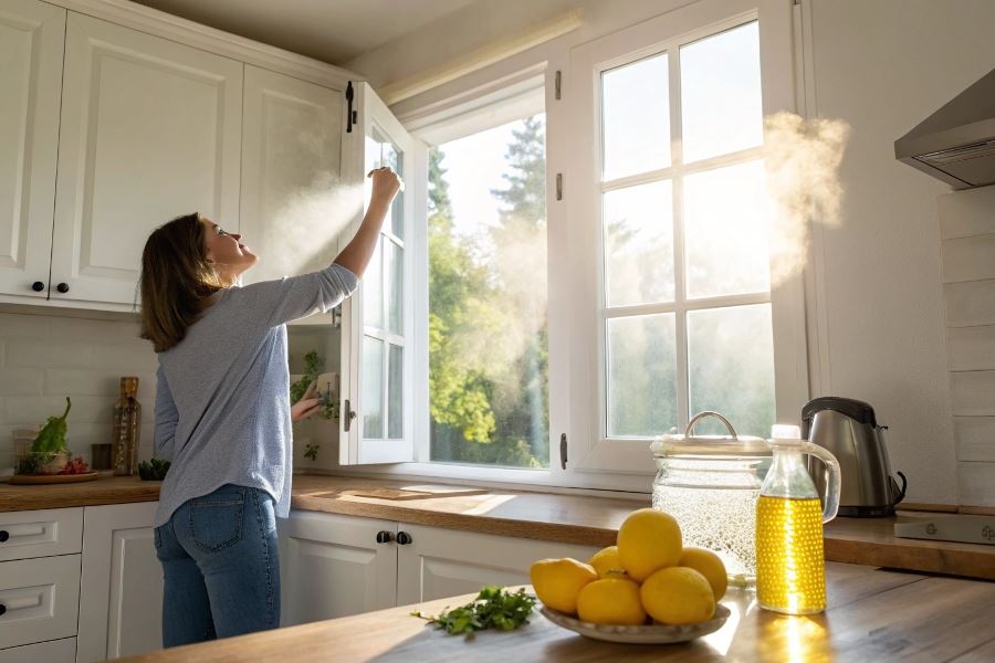 Wietrzenie to podstawowa i najszybsza metoda eliminacji zapachu spalenizny. Otwórz szeroko wszystkie okna i drzwi, tworząc przeciąg, który w ciągu 15-20 minut znacząco zmniejszy intensywność nieprzyjemnej woni. W chłodniejsze dni wystarczy nawet 5-minutowe intensywne wietrzenie.