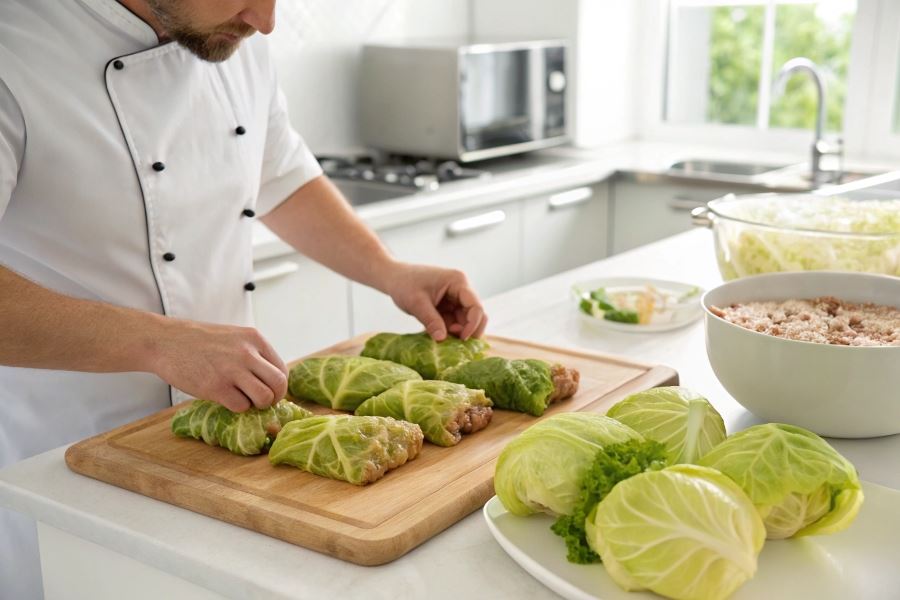 Technika szybkiego zawijania polega na formowaniu mniejszych gołąbków (5-6 cm długości), co nie tylko przyspiesza proces gotowania, ale również ułatwia konsumpcję. Najszybszą metodą jest przygotowanie gołąbków w wersji „deconstructed” – jako zapiekanka warstwowa z posiekaną kapustą, farszem i sosem pomidorowym, zapiekana w temperaturze 200°C przez 25 minut.