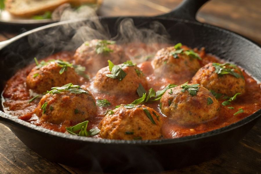 Porada szefa kuchni: Klopsiki drobiowe w sosie pomidorowym zyskują na smaku po nocy w lodówce, gdy aromaty się przegryzą. To idealne danie do przygotowania z wyprzedzeniem na rodzinne spotkania.