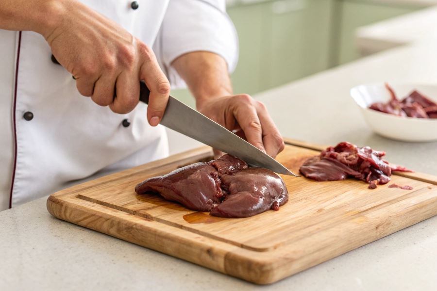 Wskazówka eksperta: Wątróbkę króliczą najlepiej czyścić na desce z tworzywa sztucznego, nigdy drewnianej, która mogłaby wchłonąć krew i zapachy.