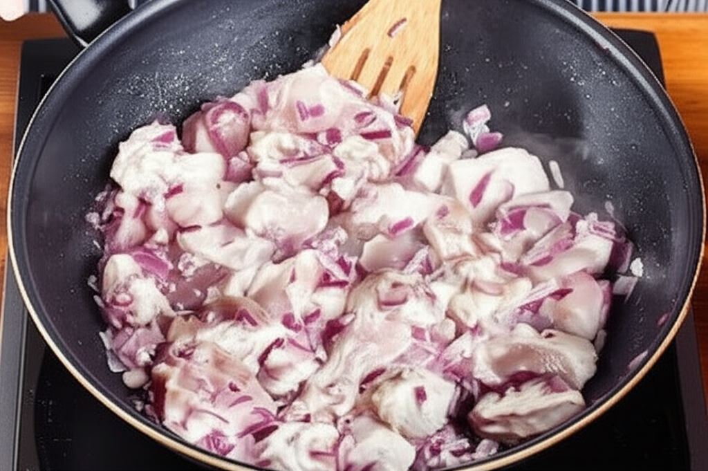 Po chwili wrzuć mięso kurczaka. Gdy uzyska rumiany kolor dodaj resztę warzyw.