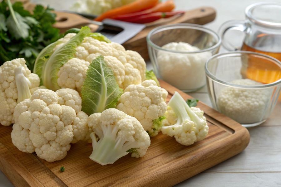 Surowy kalafior to prawdziwa skarbnica składników odżywczych przy jednoczesnej niskiej kaloryczności (około 25 kcal na 100g). Zawiera znaczące ilości witaminy C (77% dziennego zapotrzebowania w 100g), witaminy K oraz witamin z grupy B. Jest również bogatym źródłem przeciwutleniaczy takich jak kwercetyna, kemferol i sulforafan, które chronią komórki przed uszkodzeniami oksydacyjnymi.
