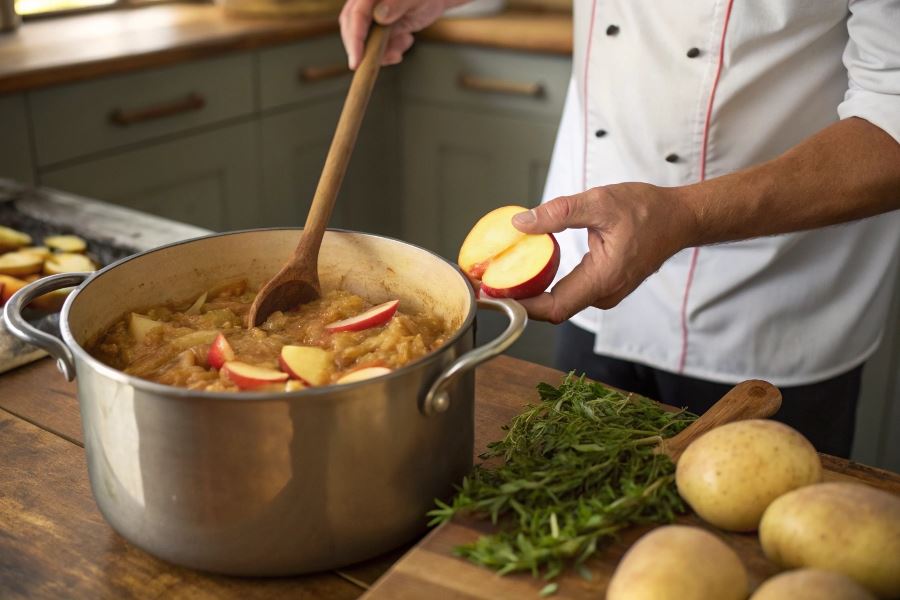 Ziemniaki i jabłka to naturalne pochłaniacze soli. Dodanie 2-3 surowych, obranych i pokrojonych w kostkę ziemniaków do garnka z bigosem na 30 minut (a następnie ich wyjęcie) znacząco zmniejszy poziom soli. Alternatywnie, kwaśne jabłka pokrojone w ćwiartki (1-2 sztuki na litr bigosu) nie tylko pochłoną nadmiar soli, ale również wzbogacą smak potrawy charakterystyczną kwaskowatością.