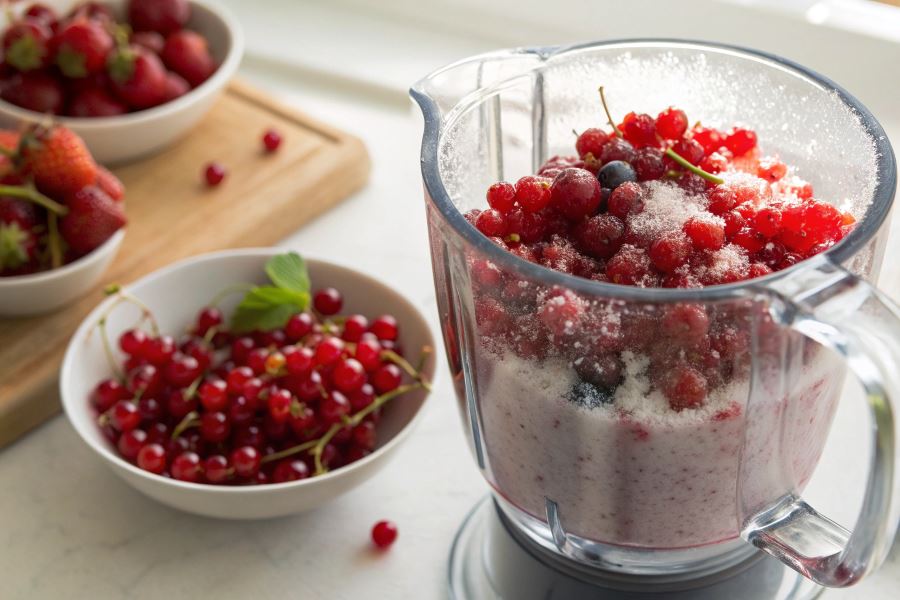 Zastosowanie czerwonej porzeczki z cukrem przygotowanej w blenderze