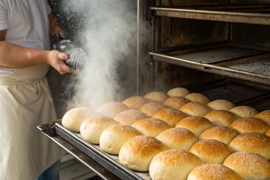 Technika skrapiania wodą to sekret profesjonalnych piekarzy. Dla uzyskania idealnie chrupiącej skórki, spryskaj bułki lekko wodą tuż przed włożeniem do piekarnika. Możesz też umieścić na dnie piekarnika żaroodporne naczynie z wodą, które wytworzy parę podczas pieczenia. Para osadza się na powierzchni bułek, tworząc cienką warstwę wilgoci, która podczas pieczenia zamienia się w chrupiącą skórkę.