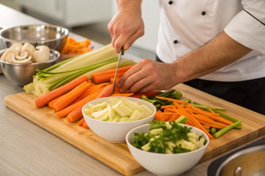 Technika „szokowego blanszowania” (krótkie zanurzenie w gorącej wodzie, następnie w lodowatej) przed dodaniem warzyw do zupy pozwala zachować ich kolor i wartości odżywcze, jednocześnie skracając czas gotowania o 30%.