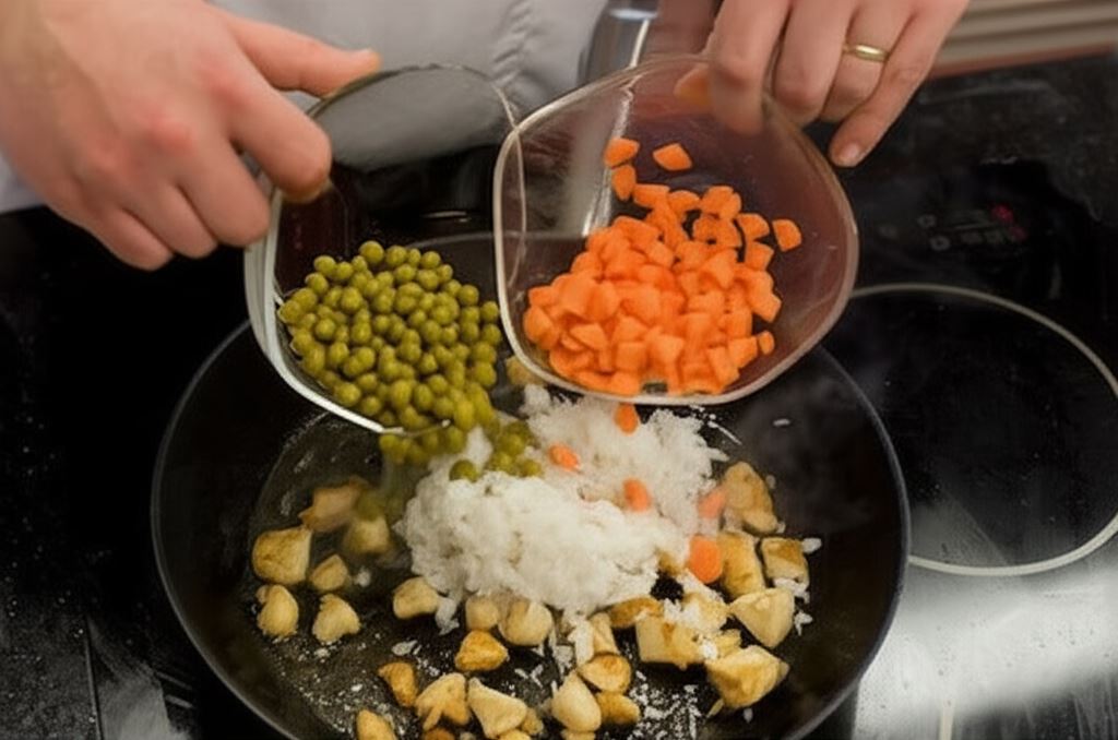 Kremowe risotto z kurczakiem i warzywami to prawdziwa uczta dla podniebienia! Delikatne mięso, doprawione Przyprawą Uniwersalną Delikat Knorr, nabiera głębokiego smaku, który harmonijnie łączy się z pozostałymi składnikami. Soczysta marchewka pokrojona w równą kostkę oraz słodki groszek z puszki dodają potrawce kolorów i wartości odżywczych. Całość połączona z ryżem i duszona w aromatycznym sosie pieczeniowym Knorr tworzy idealnie zbalansowane danie, które zachwyci każdego domownika.