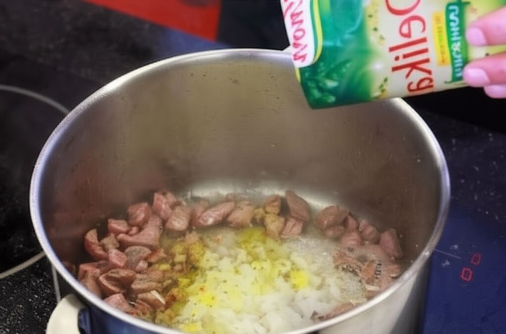 Pokrój wołowinę w kostkę i przypraw Przyprawą Uniwersalną Delikat Knorr. Smaż mięso aż będzie miękkie.