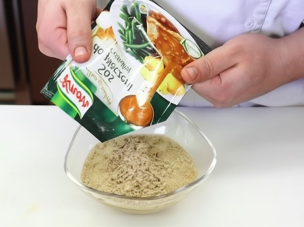 Sos do pieczeni z cebulką Knorr rozmieszaj w zimnej wodzie. Wlej go na patelnię z roladkami i zagotuj, cały czas mieszając. Duś całość na niewielkim ogniu, aż mięso będzie miękkie.