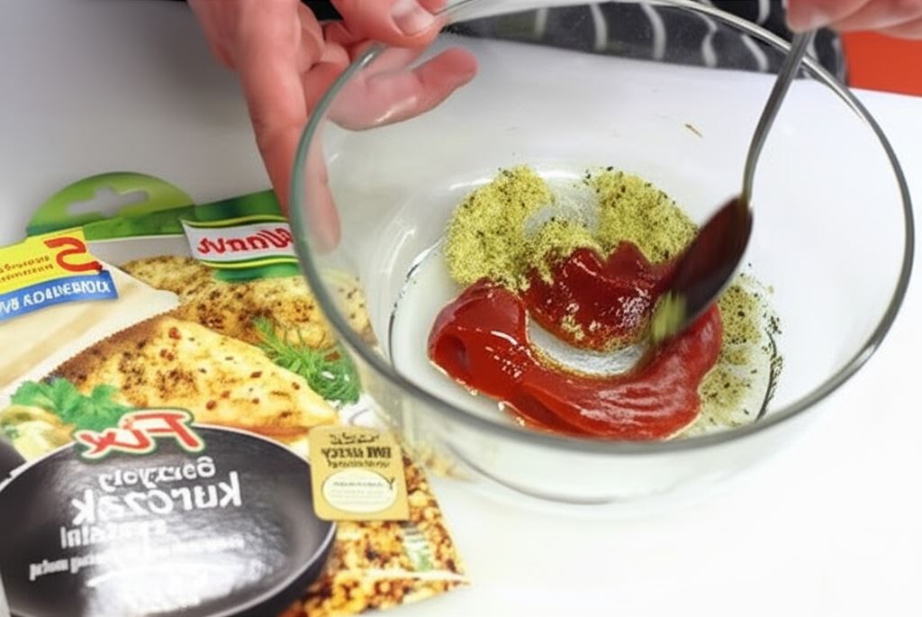Wymieszaj przyprawę Knorr z oliwą oraz ketchupem.