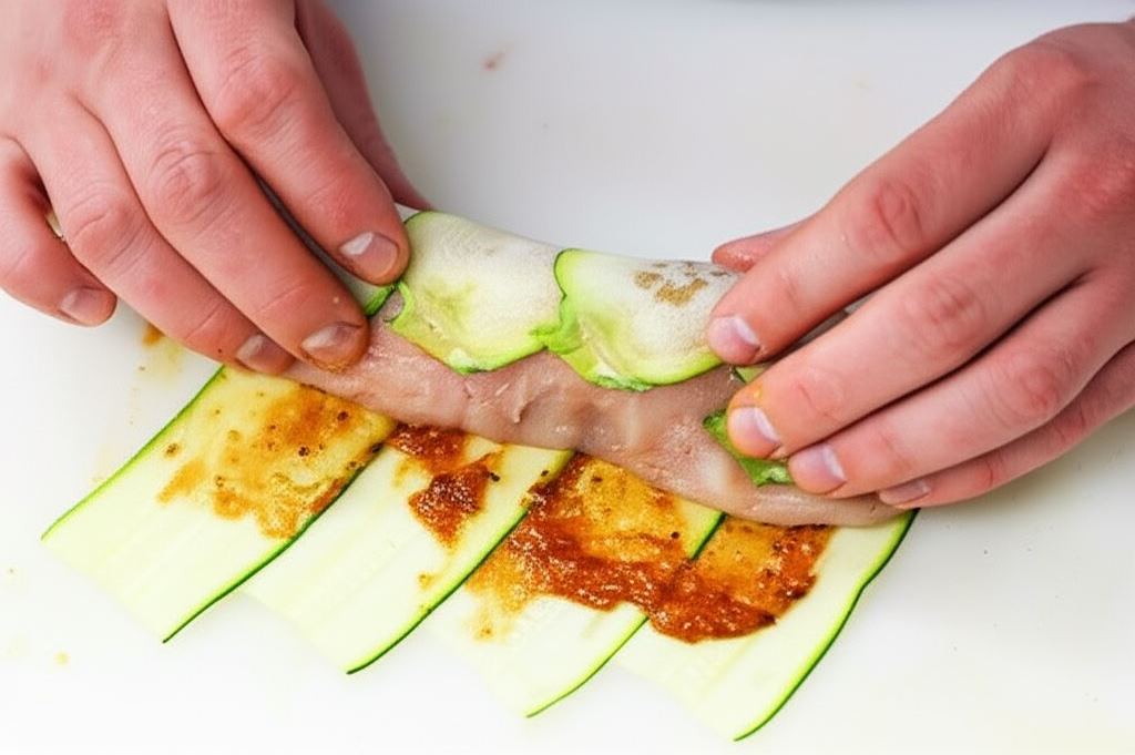 Zawinięcie roladek w plastry cukinii to nie tylko sposób na wzbogacenie smaku, ale także trik, który zapewnia mięsu wyjątkową soczystość. Dodatkowo, marynata z ketchupem nadaje potrawie apetyczny kolor i głębię smaku, a pokrojenie gotowych roladek w poprzek pozwala wyeksponować kolorowe warstwy.