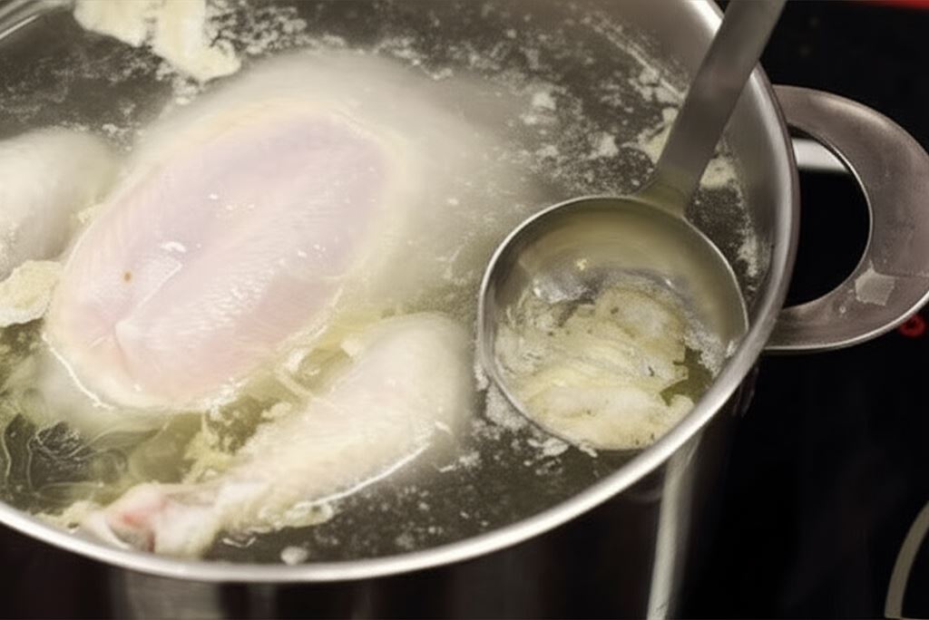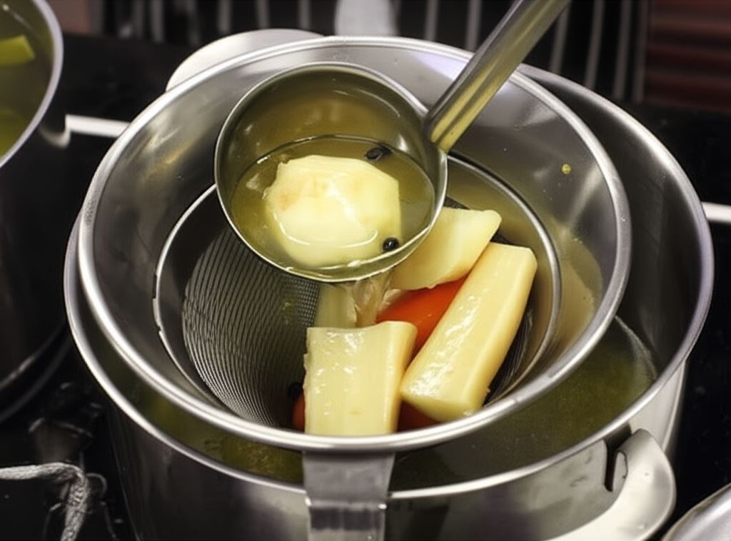 Po ugotowaniu odstaw rosół na 20 minut, a następnie powoli przefiltruj przez gęste sitko lub gazę. Rosół powinien być przejrzysty.