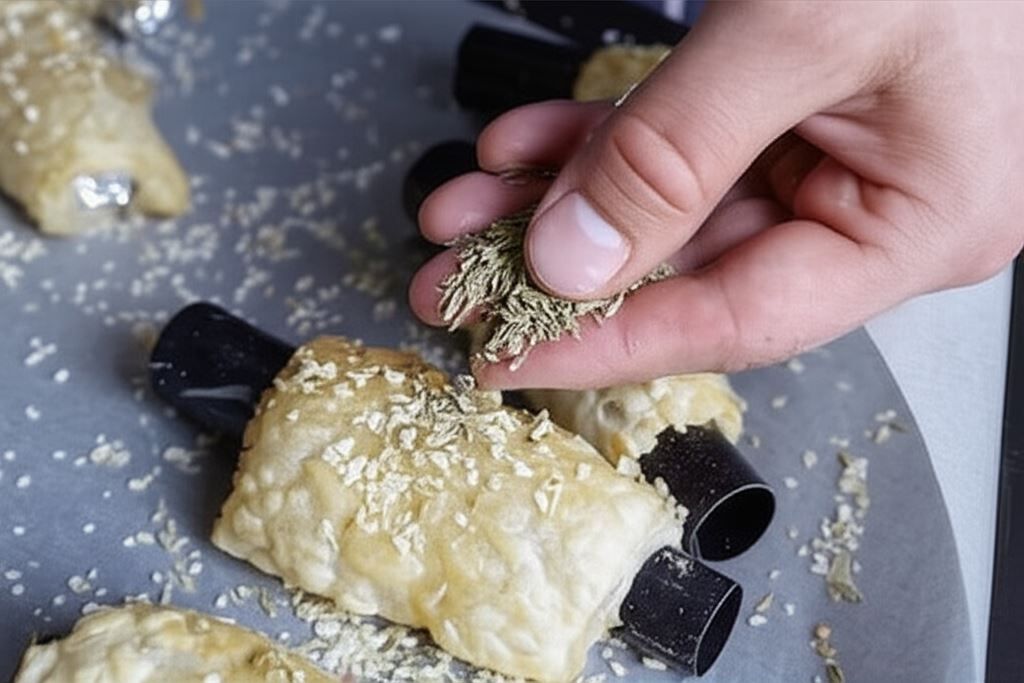 Rurki z ciasta francuskiego na słono z pastą jajeczną