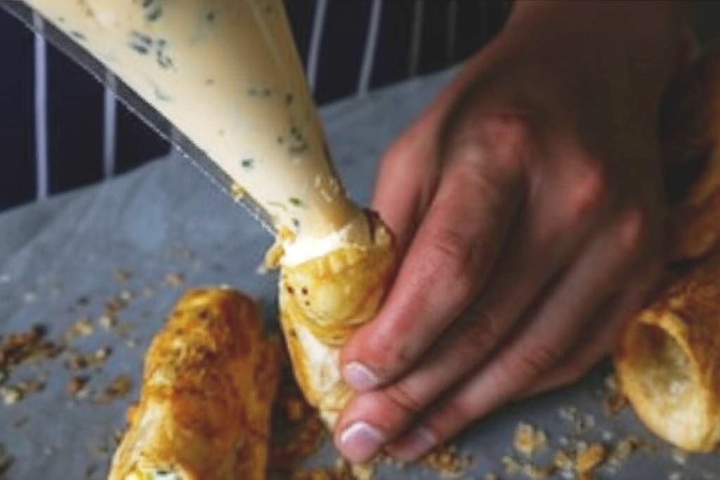 Przygotowanie jest proste – wystarczy pociąć ciasto francuskie na kwadraty, owinąć je na specjalnej foremce i upiec do złocistego koloru. Sekret tkwi w posmarowaniu rurek jajkiem i posypaniu aromatycznym rozmarynem oraz przyprawą Knorr tuż przed końcem pieczenia. Aksamitna pasta z jajek na twardo zmiksowanych z majonezem i świeżymi ziołami doskonale dopełnia chrupiące rurki.