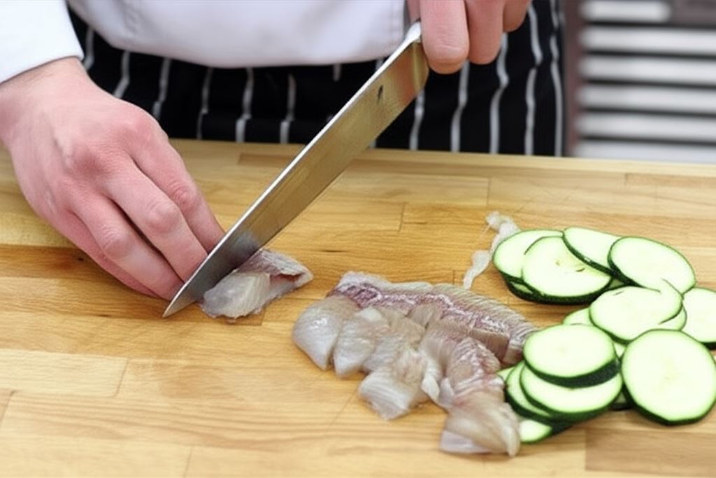 Pokrój filety ryby na mniejsze kawałki, a cukinię w plastry.