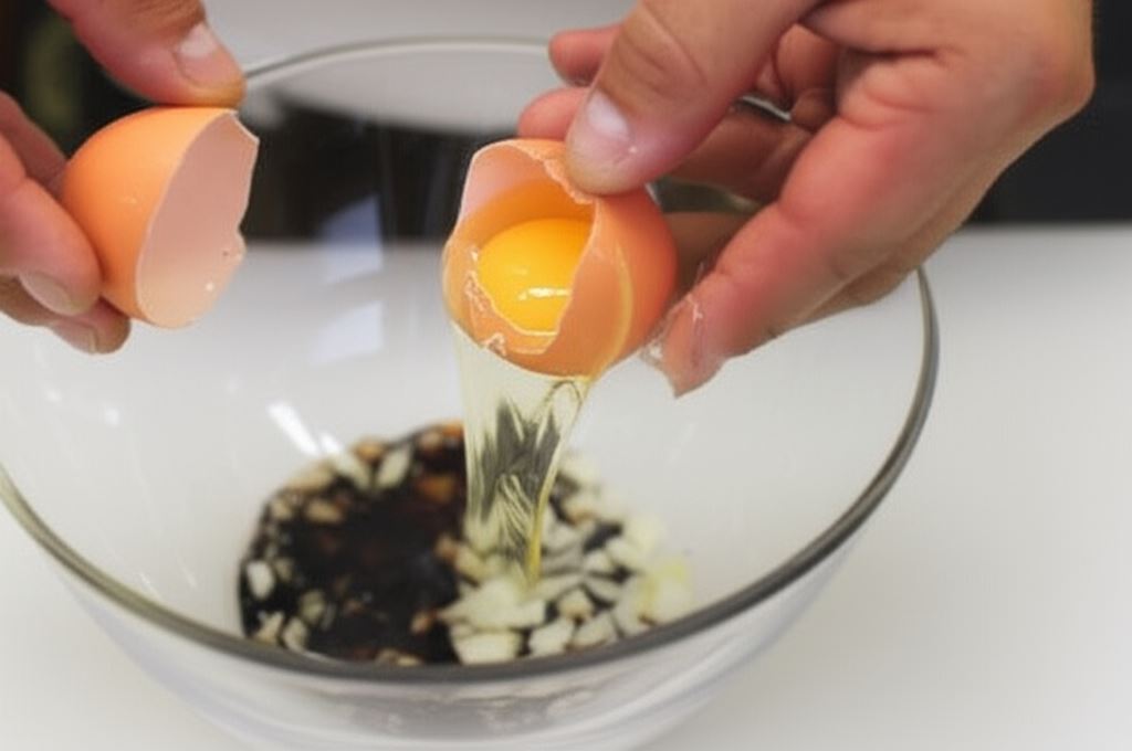 Ryż przepłucz i ugotuj w wodzie z dodatkiem kostki Bulionu na włoszczyźnie Knorr. Potem odcedź go i odstaw. Następnie do sosu sojowego wbij jajka, wsyp połowę posiekanej cebuli i dokładnie wymieszaj.