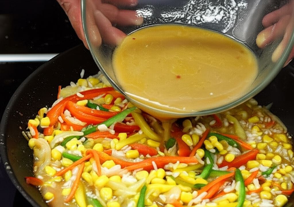 Ryż smażony z miodem to prawdziwa eksplozja smaków w jednym garnku! Ten prosty przepis łączy w sobie słodycz miodu z warzywną świeżością, tworząc danie, które zachwyci całą rodzinę. Ugotowany ryż smażony z kolorowymi paskami papryki, chrupiącą marchewką i słodką kukurydzą tworzy harmonijną kompozycję, która nabiera głębi dzięki aromatycznemu Fixowi Knorr.