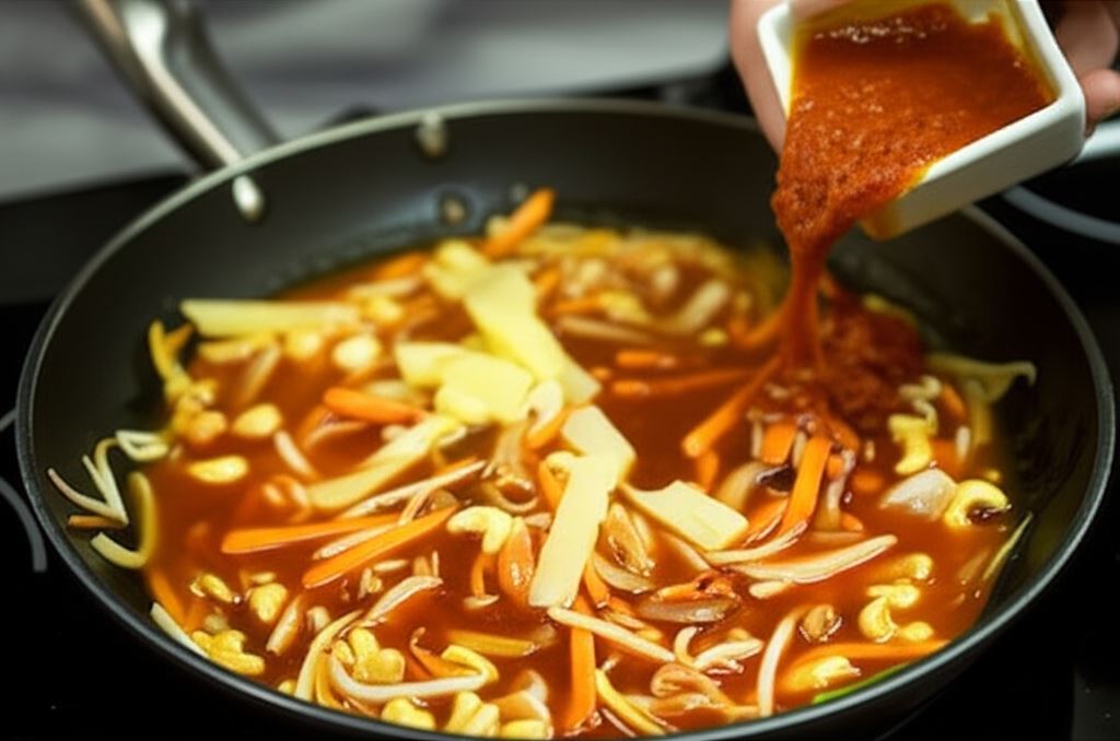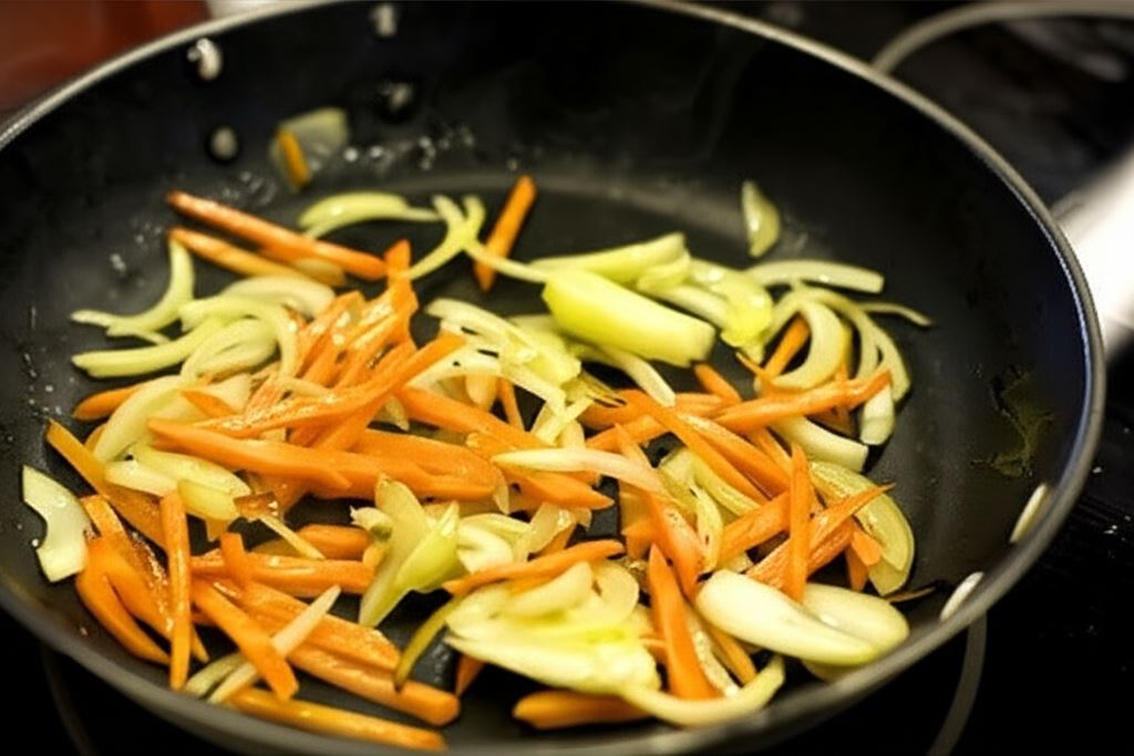 Sekret tego dania tkwi w idealnym balansie składników. Chrupiące paseczki marchewki, delikatna biała cebula i egzotyczne pędy bambusa nadają potrawie wyrazistej tekstury. Orzechy nerkowca wprowadzają przyjemną chrupkość i subtelną słodycz, która doskonale komponuje się z pozostałymi składnikami.