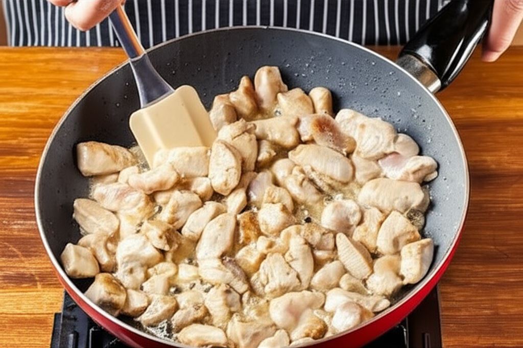 Podziel pierś kurczaka na małe kawałki, dopraw solą, pieprzem i Przyprawą do kurczaka, a następnie odłóż na 30 minut do lodówki. Po upływie tego czasu usmaż na złoty kolor.