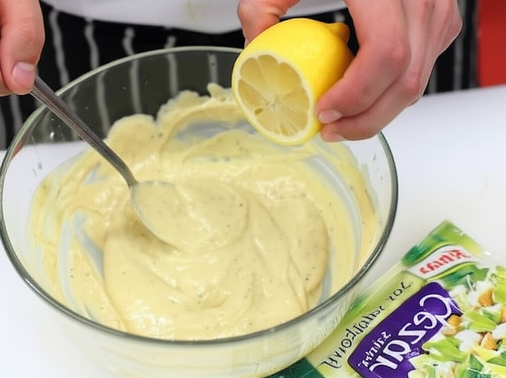 Sporządź sos sałatkowy. Połącz zawartość opakowania Knorr z majonezem i utartym serem. Taki przygotowany dressing przemieni zwykłą sałatkę w niezwykłe danie.