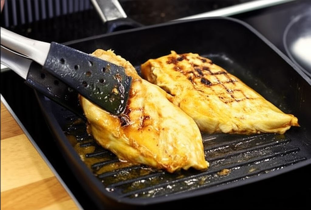 Filety kurczaka posyp przyprawą, zrumień na patelni na gorącym oleju, dokończ w piekarniku. Ostudź.