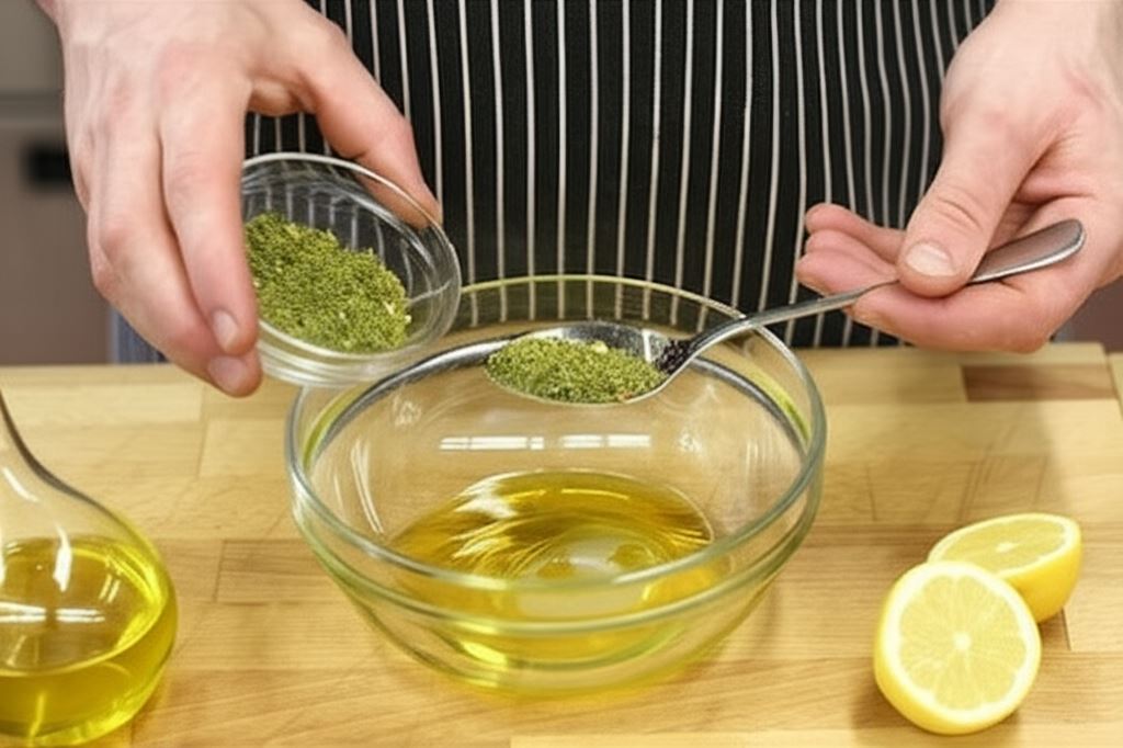 W misce połącz sok wyciśnięty z cytryny, oliwę z oliwek i sos sałatkowy Knorr.