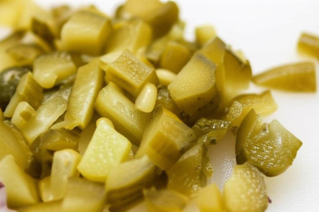 Ogórki konserwowe i cebulę posiekaj w małą kostkę, kukurydzę odsącz z zalewy.