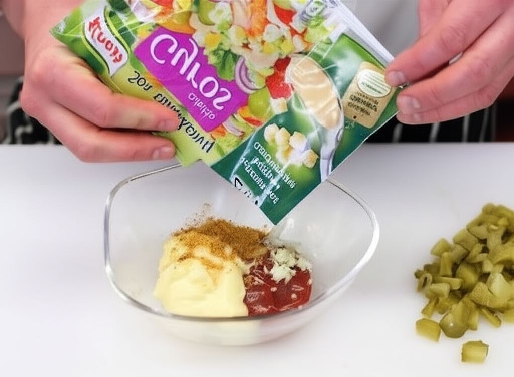 Sekret tej wyjątkowej sałatki tkwi w doskonałym sosie, łączącym kremowy majonez, ketchup i czosnek z sosem sałatkowym Knorr. Każda warstwa składników skąpana w tym aromatycznym sosie tworzy niepowtarzalny smak, który długo pozostanie w Twojej pamięci.