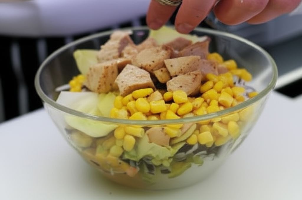 Sałatkę możesz podać z chrupiącymi grzankami Knorr, które dodadzą jej dodatkowej tekstury. Spróbuj też dodać świeże zioła – bazylię lub miętę – które podkreślą jej orzeźwiający charakter. Możesz również zastąpić kukurydzę świeżym pomidorem lub papryką dla jeszcze bardziej kolorowego efektu.