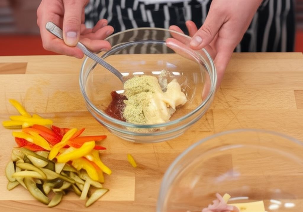 Połącz sos sałatkowy Knorr z Majonezem Babuni Hellmann's oraz Ketchupem Hellmann's Łagodnym.