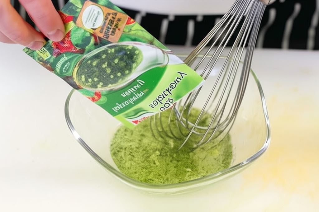 Sos sałatkowy Knorr przygotuj zgodnie z instrukcją na opakowaniu łącząc go z wodą i olejem.