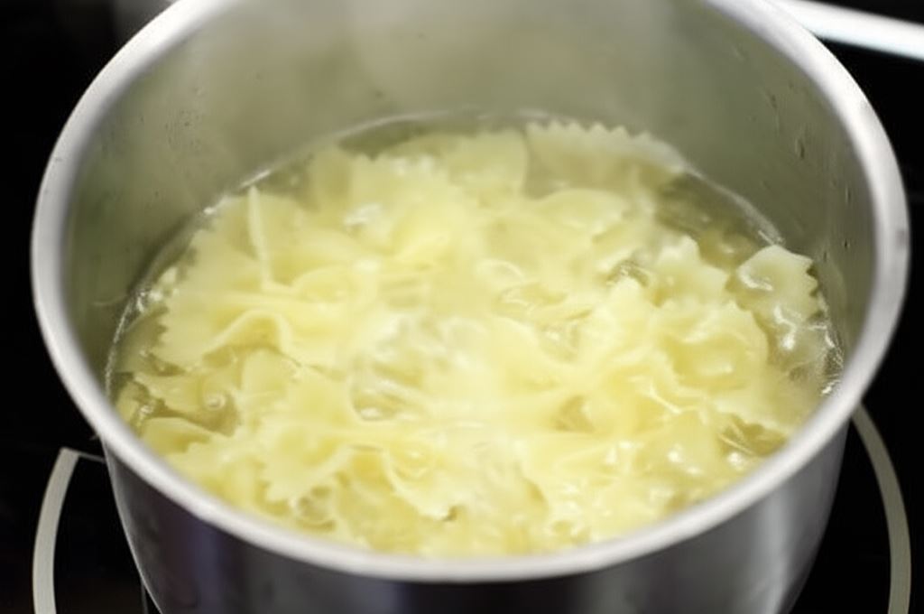 Makaron farfalle albo inny przygotuj zgodnie z instrukcją na opakowaniu. Krewetki koktajlowe umieść na sitku, aby się odmroziły.