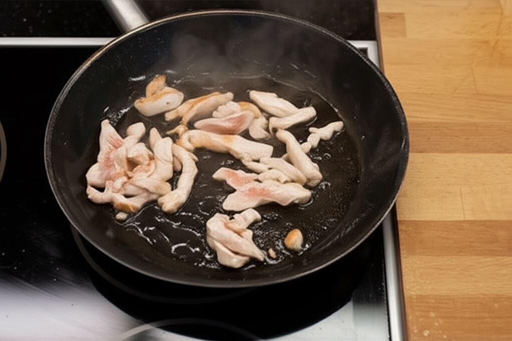 Ugotuj makaron. Kurczaka potnij na cienkie paski i przysmaż na patelni do miękkości. Przypraw przyprawą Knorr. Możesz zastosować ryż zamiast makaronu.
